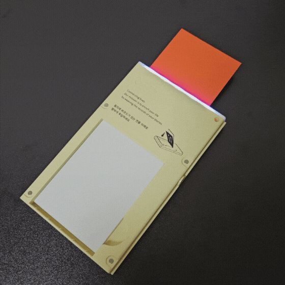용지의 경우 5.8cm * 10.2cm 크기로 포토카드 사이즈로 적당하다고 생각됩니다.