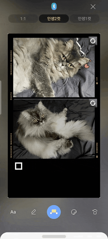 이미지 박스 앱에서 이렇게 증명사진, 인생 2컷 등의 프레임을 사용해 사진을 꾸밀 수 있습니다.